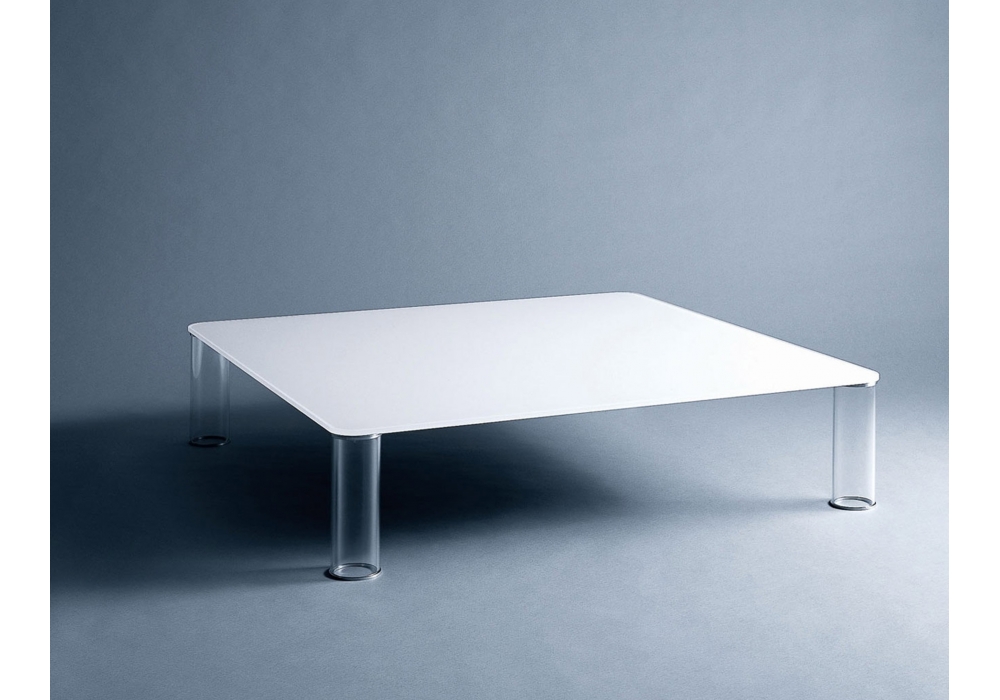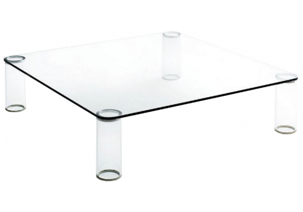 Pipeline, diseñada por Piero Lissoni para Glas Italia, es mesita de vidrio templado extraclaro o lacado brillante. Las patas cilíndricas son de vidrio de borosilicato transparente.