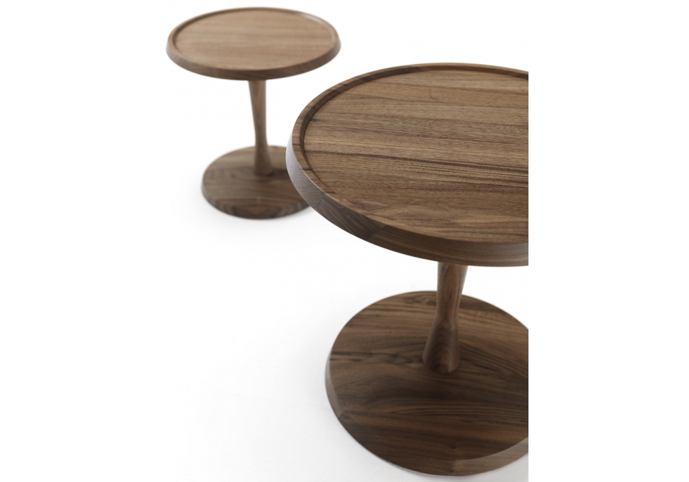 Pegaso diseñada por Riva 1920 es una mesa auxiliar redonda realizada completamente en madera maciza disponible en diferentes acabados, tablero tallado con un pantógrafo, pierna central y base. También disponible en 2 dimensiones.