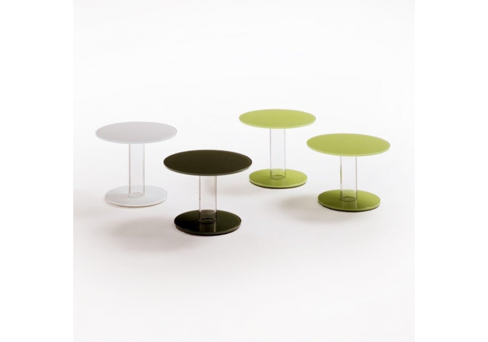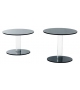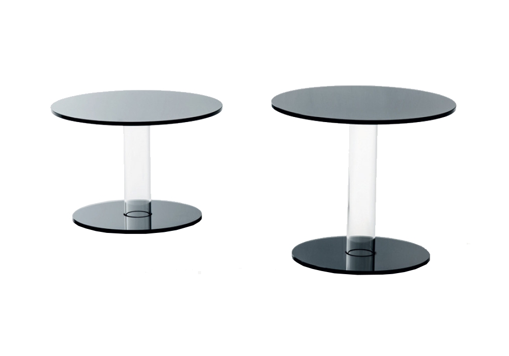 Hub diseñada por Piero Lissoni para Glas Italia es una mesita baja con un tablero de vidrio templado de 12 mm, soportado por una base compuesta por un cilindro hueco de vidrio de borosilicato transparente y un pie de vidrio de 12 mm. El tablero y el pie están disponibles en vidrio lacado brillante o mate.