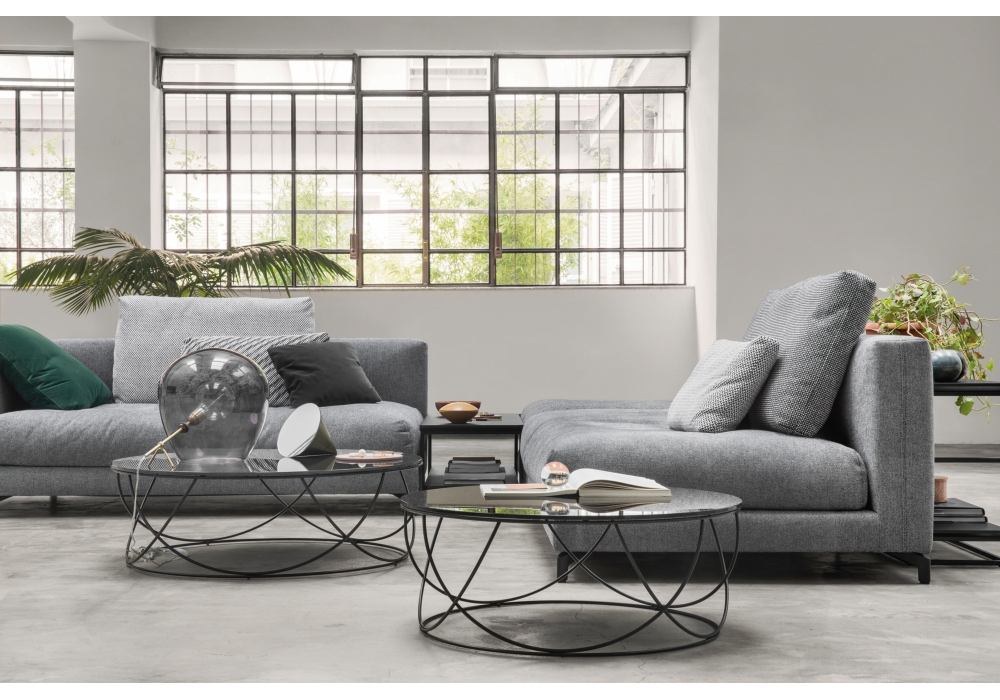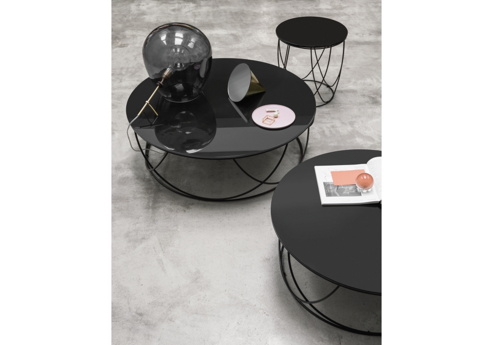 8770 firmada por Annette Lang para Rolf Benz es una colección de mesitas con tablero en vidrio Parsol o Optiwhite. Estructura de acero barnizado en color RAL 9017 Tráfico negro y RAL 7022 Umbra gris o RAL 1020 Amarillo Olive.