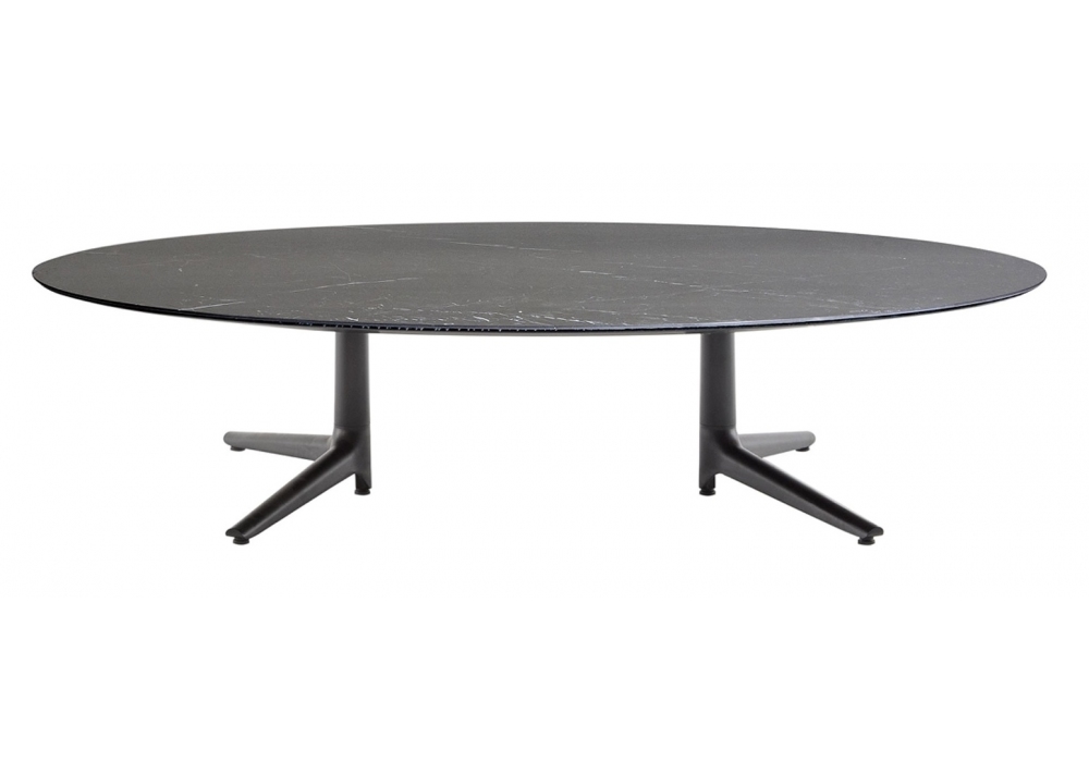 Multiplo Low diseñada por Antonio Citterio para Kartell es una mesita realizada con sobre de gres acabado mármol o vidrio y estructura de aluminio fundido a presión pintado mate del mismo color que el sobre. Disponible en diferentes dimensiones.