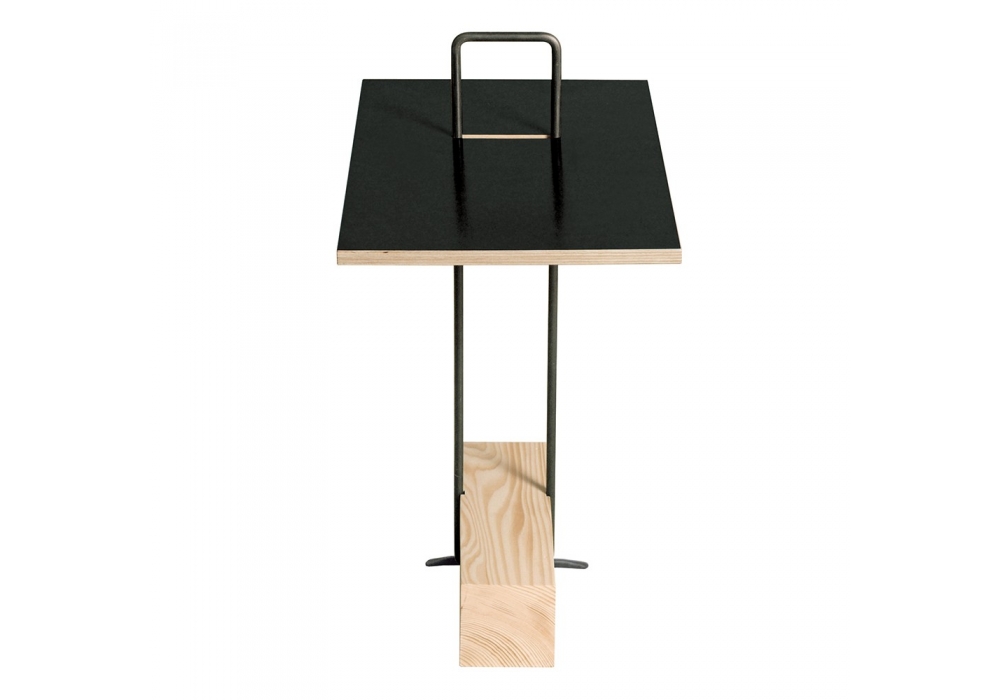 Abgemahnt diseñada por Nils Holger Moormann para Moormann es una mesa auxiliar con tablero en madera de abedul disponibles en 2 diferentes acabados, estructura de acero y base de madera.