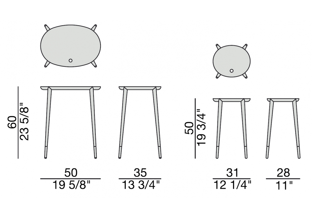 | Dimensiones | 50 x 35 x H 60 cm; 31 x 28 x H 50 cm |