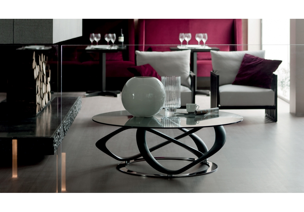 Infinity diseñada por S. Bigi para Porada es una mesita con estructura en nogal canaletta o fresno macizo disponible en diferentes acabados, fijada sobre de una base de metal. Tapa en cristal templado (espesor 10 mm). Disponible en diferentes dimensiones.