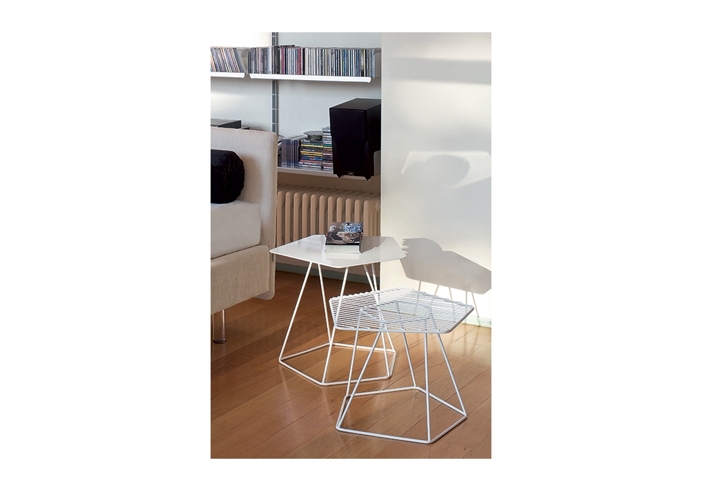 Tectonic es una mesa auxiliar diseñada por Alain Gilles para Bonaldo. La estructura es de acero pintado con una malla de alambre o chapa de 3 mm de espesor. Disponible en varios acabados.