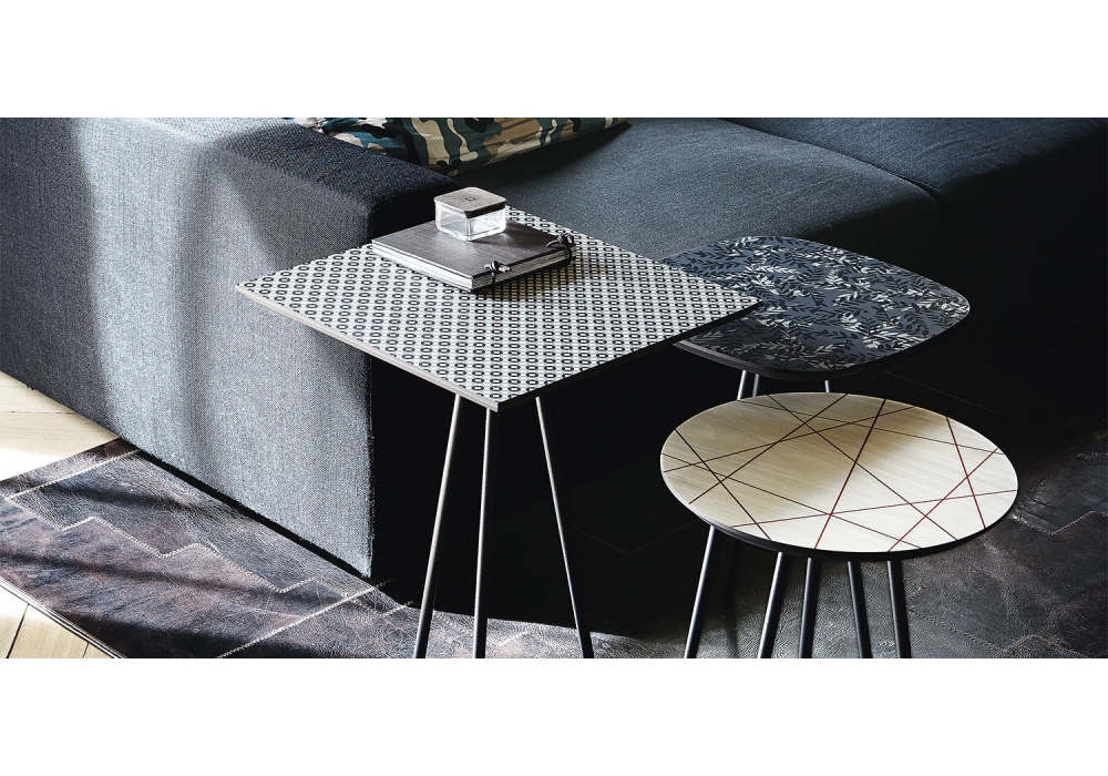 Kaos diseñada por Alessio Bassan para Cattelan Italia es una mesa auxiliar con base en acero barnizado gofrado blanco o graphite. Sobre en arce serigrafiado disponible con dos estampados geométricos. Disponible en tres diferentes medidas.