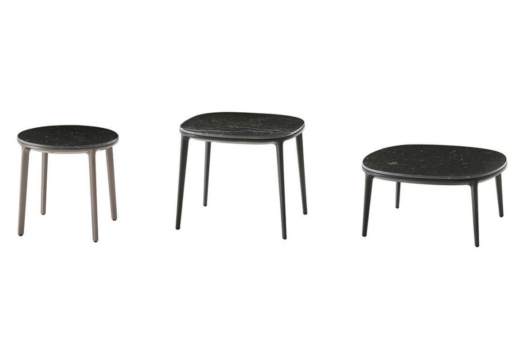 Caratos diseñada por Antonio Citterio para Maxalto es una mesita con estructura metálica y superficie en mármol blanco Carrara o negro Marquinia. Disponible en tres medidas.