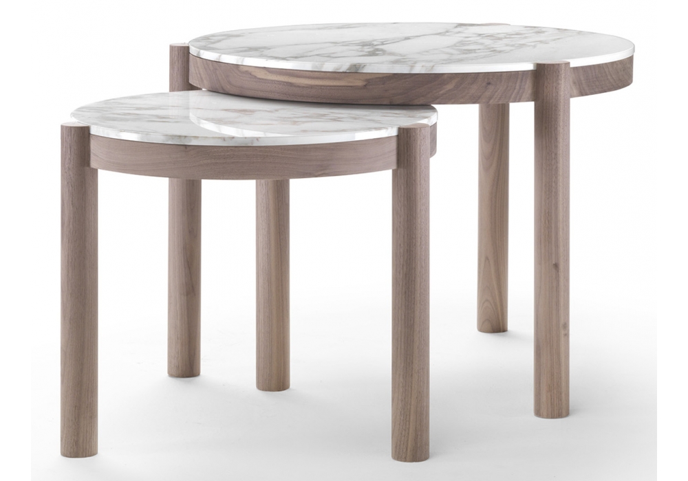 Gustav diseñada por Carlo Colombo para Flexform es una mesita con estructura de madera disponible en diferentes acabados. Sobre en mármol. Disponible en diferentes dimensiones.