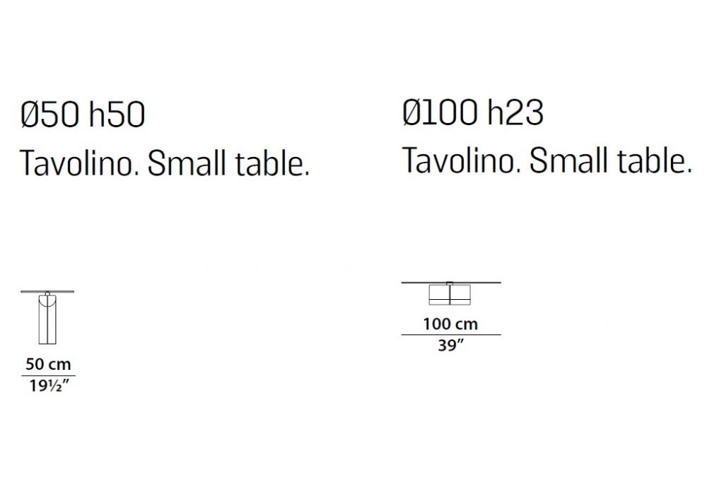 | Dimensiones | Ø 50 x H 50 cm; Ø 100 x H 23 cm. |
