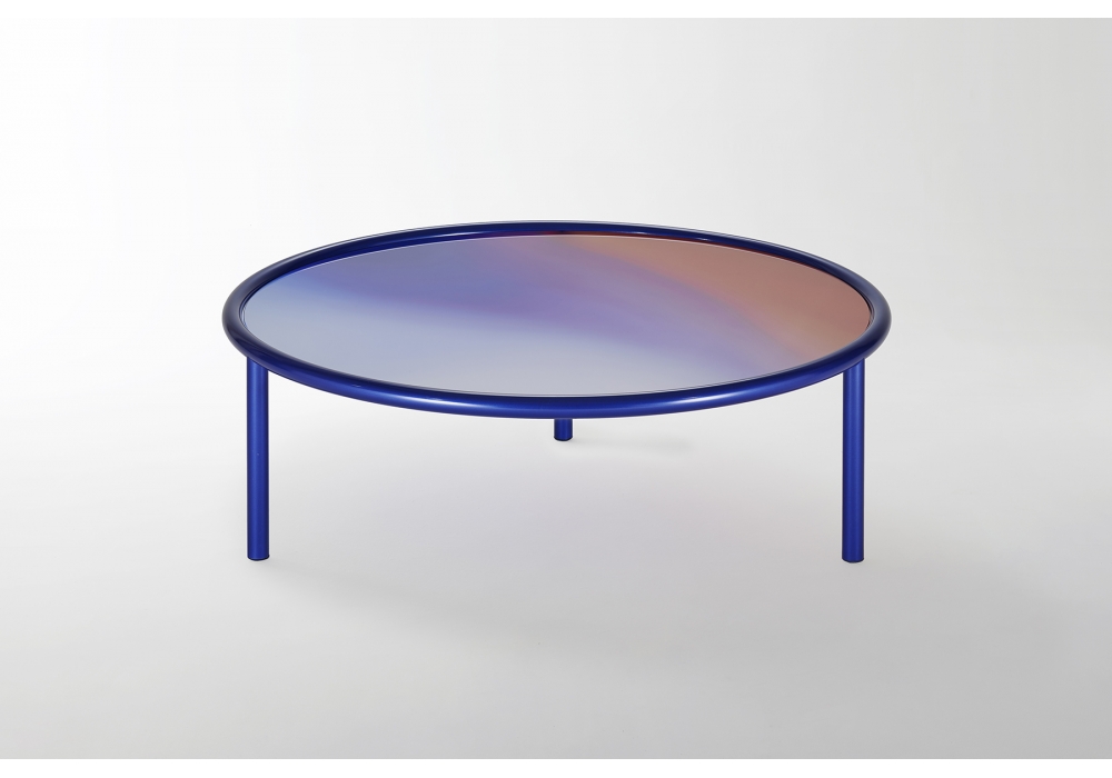 L.A. SUNSET diseñada por Patricia Urquiola para Glas Italia es una mesita con estructura en tubo de metal y superficie de cristal estratificado de ópalo. El sobre es una paleta de colores que degradan y se funden. Disponible en tres dimensiones.