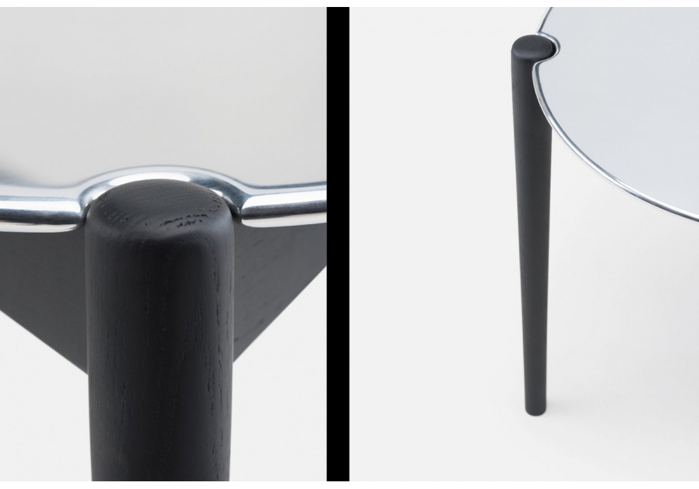 Sidekicks diseñada por Studioilse para De La Espada es una mesa auxiliar con patas en madera disponible en diferentes acabados y tablero en aluminio pulido. También disponible en 2 medidas.
