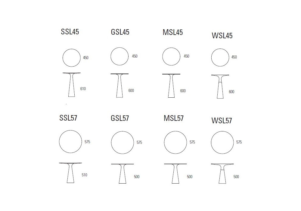 | Dimensiones | Ø 45 x H 60/61 cm; Ø 57.5 x H 50/51 cm |