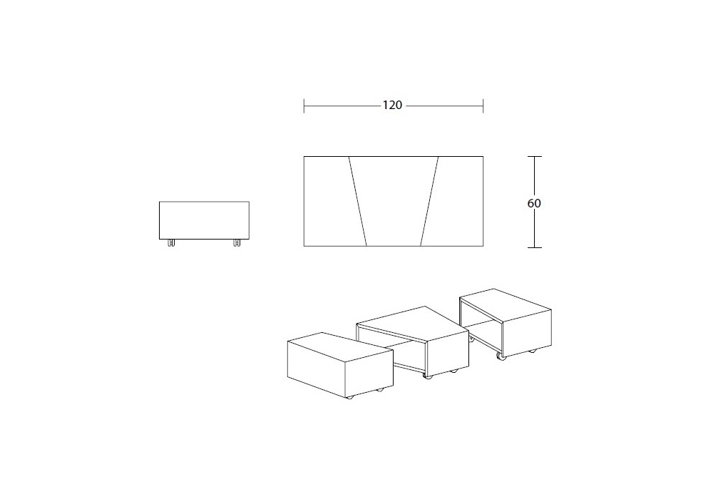 Trinacria diseñada por S. Bellavia & C. Casella para Lithea es una mesita compuesta por 3 elementos con ruedas. También disponible en diferentes acabados.