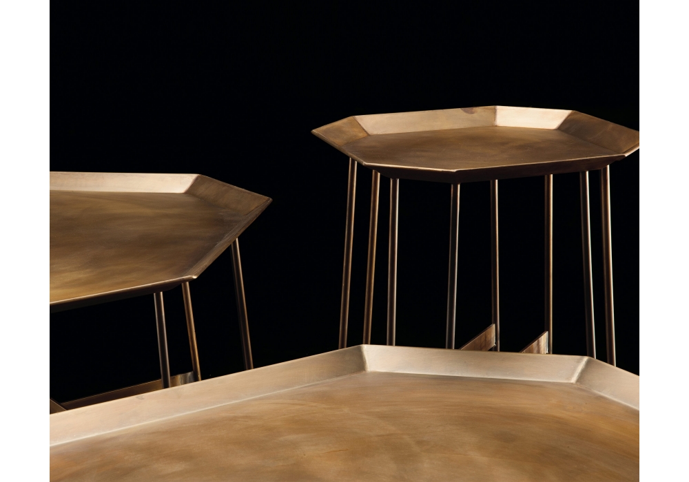 Octagon diseñada por Massimo Castagna para Henge es una mesa de centro estructurada con patas tubulares sostenidas por barras rectangulares entrecruzadas. El tablero, a juego con las patas, es octogonal en metal pintado. Octagon es disponible en diferentes medidas y acabados.