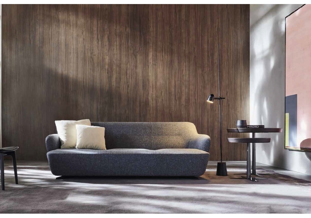 Kew diseñada por Rodolfo Dordoni para Molteni&C es una mesita con tablero propuesto en mármol Grigio Oriente y Calacatta Oro y en las siguientes maderas: eucalipto, roble grafito y nogal. El borde de la parte superior es realizado en cuero Pandora. Estructura metálica en peltre pulido.