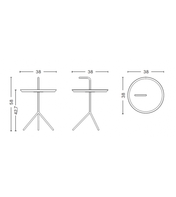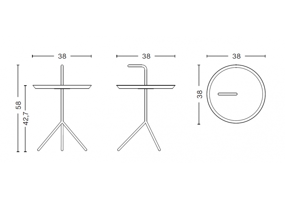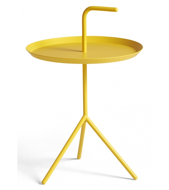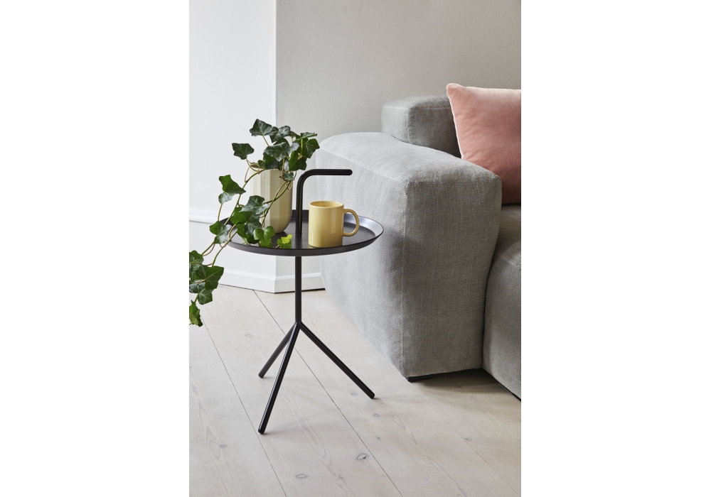 Don't Leave Me diseñada por Thomas Bentzen para Hay es una mesita de centro ligera realizada en acero con recubrimiento de polvo brillante o mate. Gracias al asa es posible llevarlo cómodamente de una habitación a otra. Disponible en diferentes acabados.