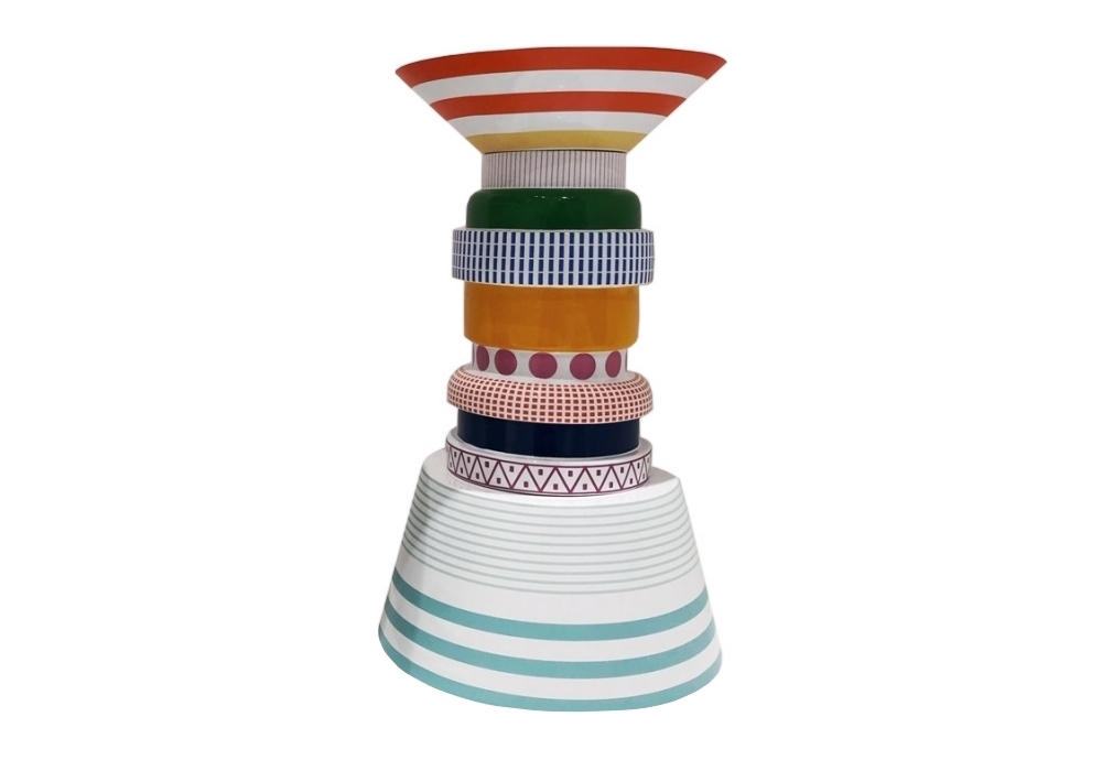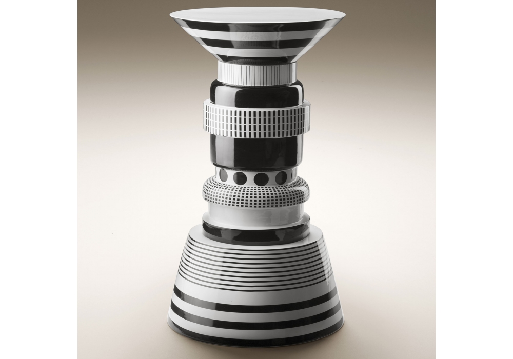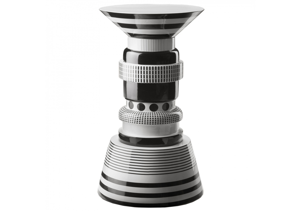 Gilberto diseñada por Pepa Reverter para Bosa es una mesa auxiliar realizada en cerámica, con contraste de patrones y decoraciones. Gilberto es parte de la colección de mesas auxiliares Bossa Nova. Disponible en 2 acabados: negro / blanco o multicolor.
