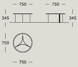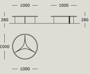 | Dimensiones | ⌀ 50 x H 41 cm; ⌀ 75 x H 34,5 cm; ⌀ 100 x H 28 cm. |
