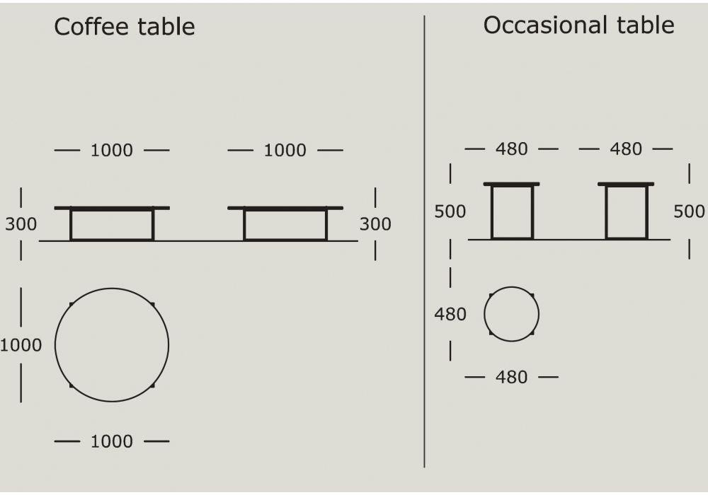 | Dimensiones | ⌀ 100 x H 30 cm; ⌀ 48 x H 50 cm. |