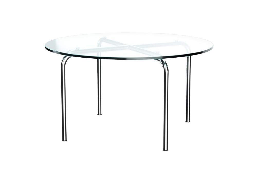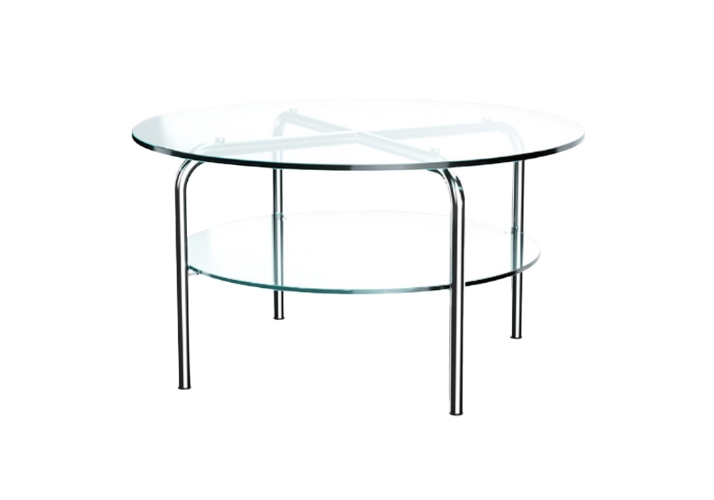 MR 516 diseñada por Ludwig Mies van der Rohe para Thonet es una mesa auxiliar con estructura en tubo de acero cromado y tapa en cristal. Disponible con o sin capota suplementaria.