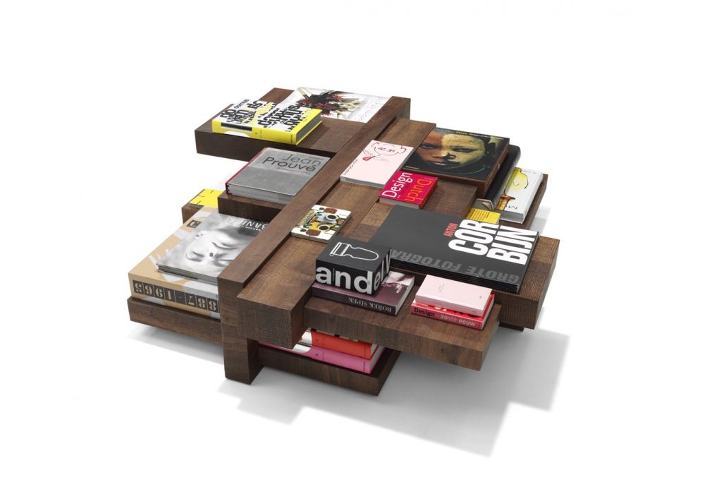 Manhattan diseñada por Roderick Vos para Linteloo es una mesita con estructura en roble macizo ahumado sobre contrachapado de abedul, tratado con aceite de linaza.