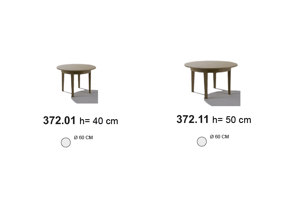 | Dimensiones | Ø 60 x H 40 cm; Ø 60 x H 50 cm. |