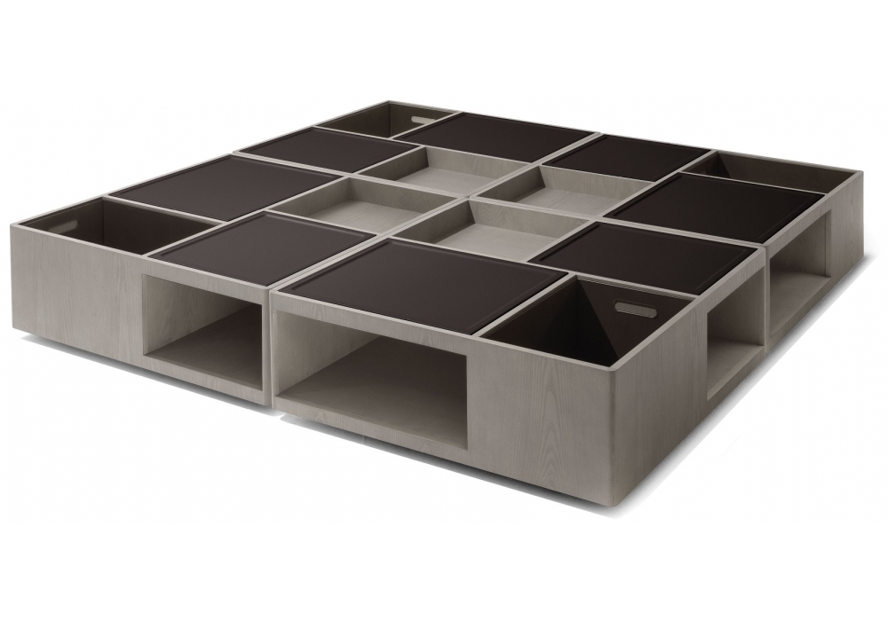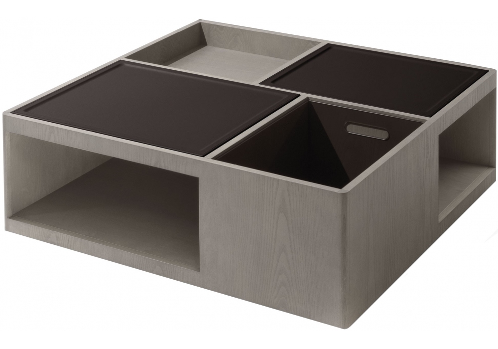 Skyline diseñada por Carlo Colombo para Giorgetti es una mesita cuadrada de madera de fresno con compartimentos abiertos. Tablero disponible en diferentes acabados: mármol, cuero, peltrox y cristal.