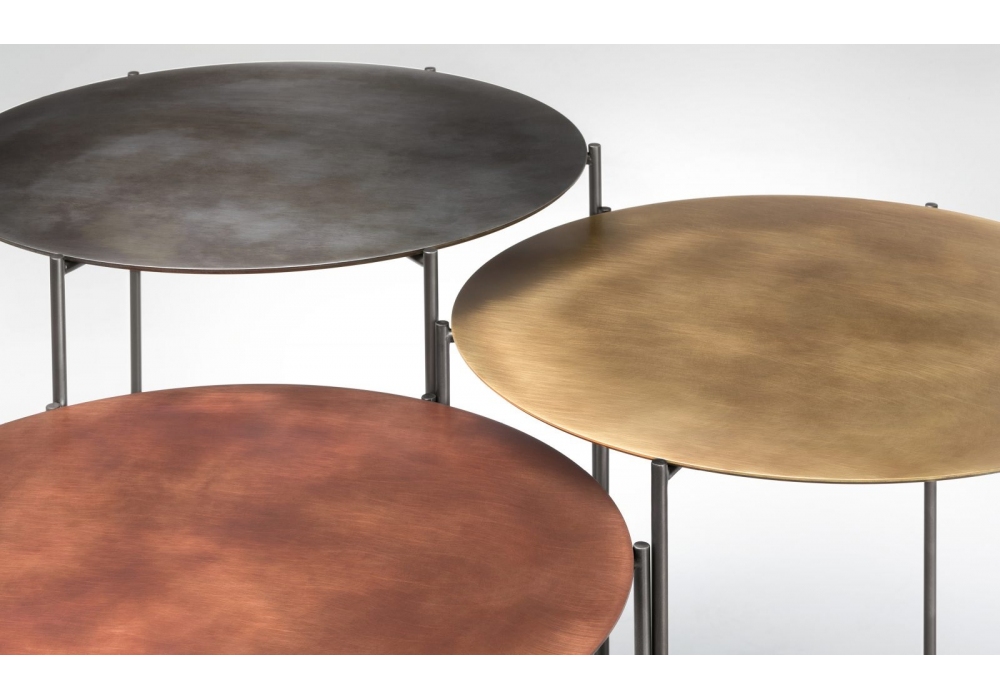 Band diseñada por Baldessari & Baldessari para DeCastelli es una mesita realizada con patas de hierro y tapa de metal. Disponible en diferentes acabados y dimensiones.