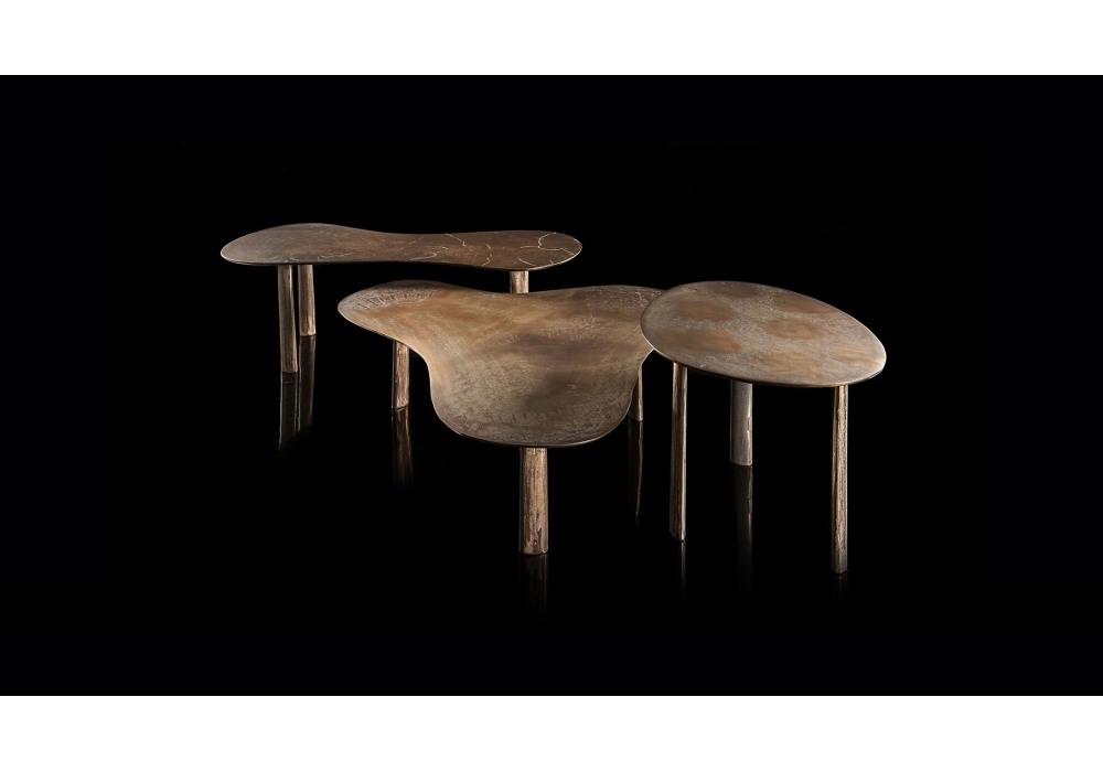 Puddle diseñada por Yabu Pushelberg para Henge es una mesa de centro realizada con estructura de fundición a tierra en diferentes acabados. Disponible en diferentes modelos.
