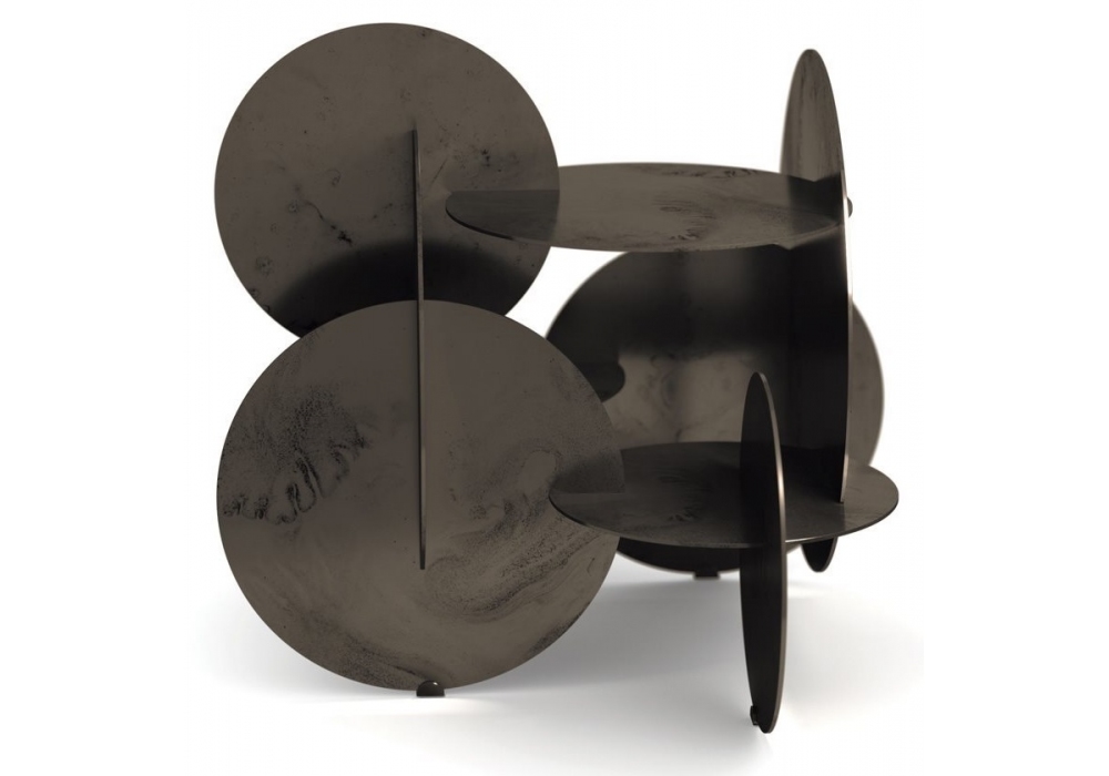 Monete diseñada por Massimo Castagna para Gallotti&Radice es una mesita en metal bruñido mano. Metal bruñido a mano se tiñe naturalmente y no uniforme. esta artesanía le da a cada habitación un singularidad haciéndolo excepcional. También disponible versión en metal lacado brillante en el colores “oxide red” (RAL 3009) o “black green” (RAL 6012). Disponible en 2 medidas.