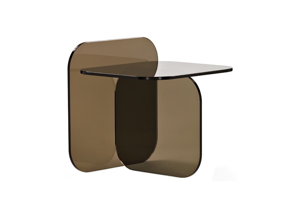 Sol diseñada por Ortega-Guijarro para ClassiCon es una mesa auxiliar realizada en cristal parsol en color bronce o gris. O cristal con capa intercalada en color azul real.