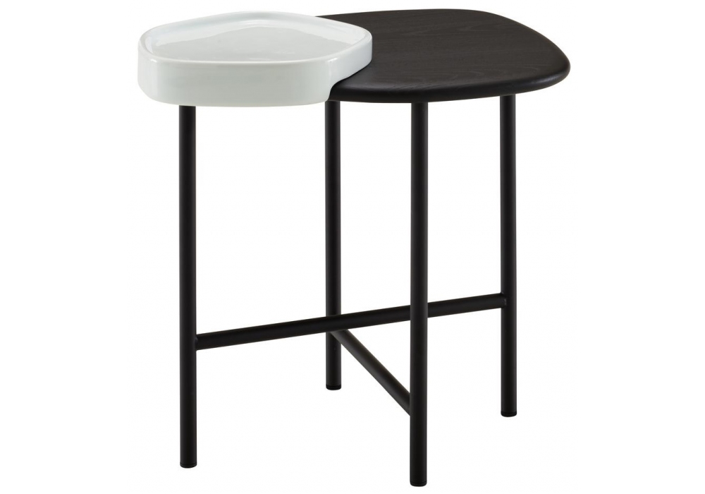 Lewa diseñada por Sebastian Herkner para Ligne Roset es una mesa auxiliar con base en acero lacado negro satinado, sobre en fresno macizo con bandejas en cerámica estampada esmaltada brillante. Disponible en 2 versiones.