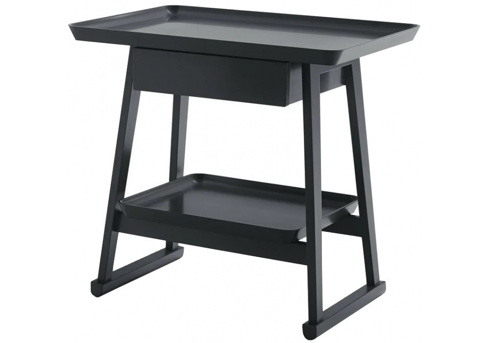 Recipio '14 diseñada por Antonio Citterio para Maxalto es una mesa auxiliar con cajón y bandeja. Estructura soporte y bandeja en acabado tipo goma laca negro, rojo o soia.