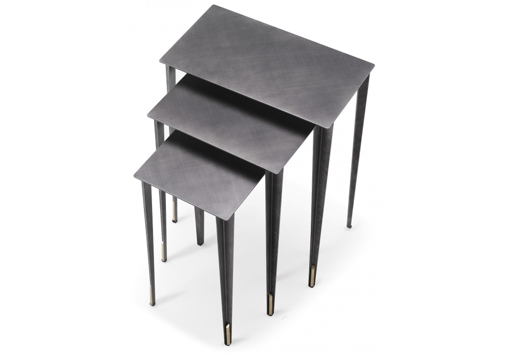 Spillo diseñada por Giorgio Cattelan para Cattelan Italia es una colección de mesas auxiliares realizada con estructura en brushed Brass, Brushed Bronze o Brushed Grey y detalles en latón.
