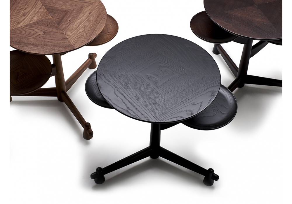 Árbol diseñada por Jaime Hayon para Ceccotti es una mesa auxiliar realizada en nogal americano macizo o fresno, con tres tableros a diferentes alturas.
