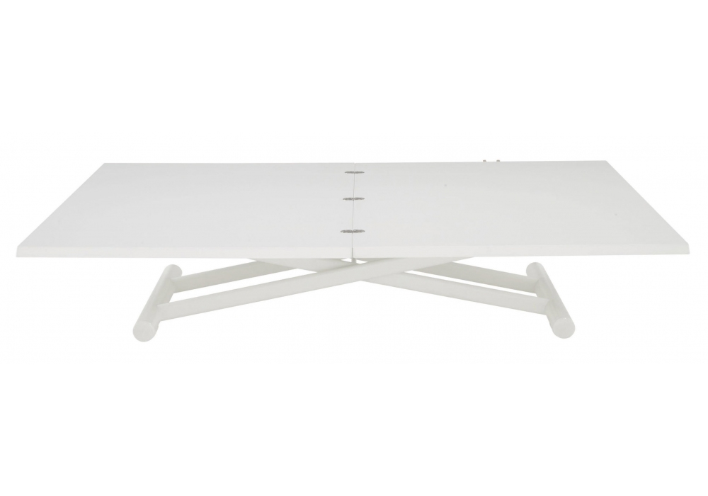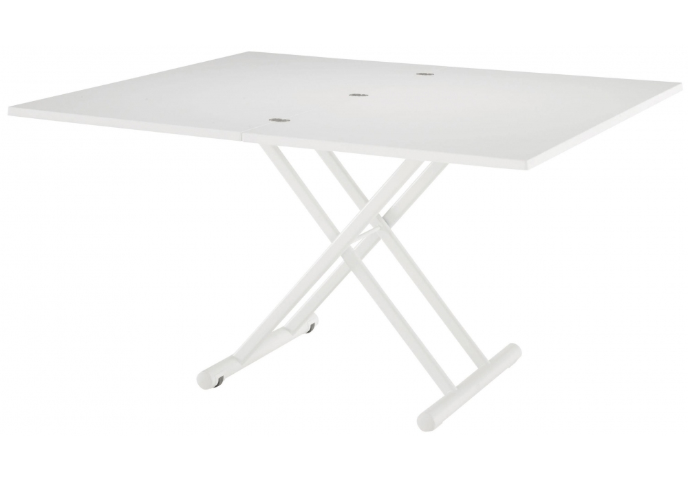 Brunch diseñada por Ligne Roset es una mesa regulable en altura con base en acero lacado Epoxi blanco satinado, equipada con dos ruedas de plástico negro integradas en cada base para un deslizamiento efectivo. Superficie abatible en MDF lacado blanco satinado.