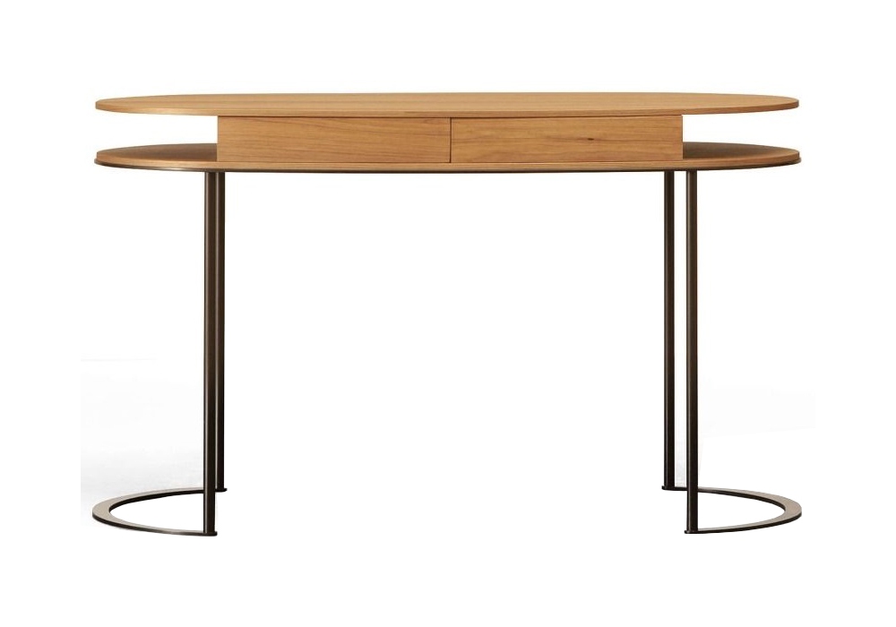 Ortis diseñado por Gabriele & Oscar Buratti para Lema es un escritorio con estructura en metal pintado bronce, superficie y cajones disponibles en diferentes acabados.