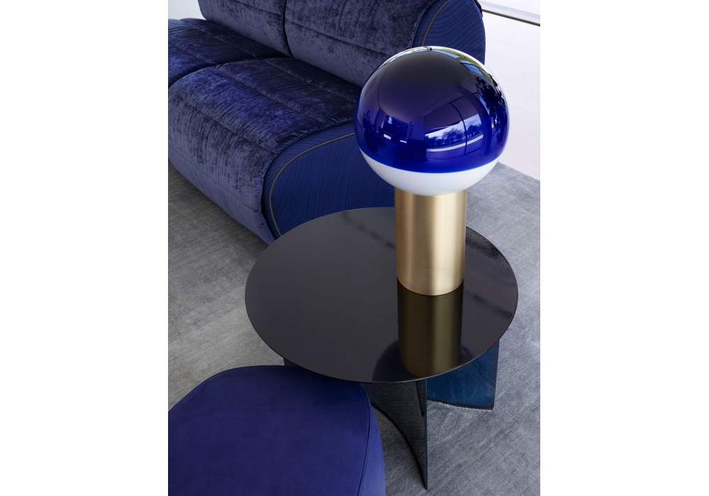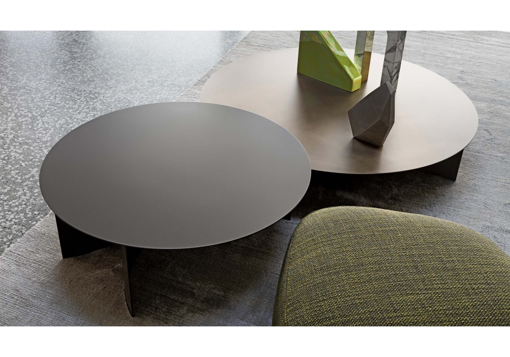 Pierre diseñada por Studio Contromano para Flou es una colección de mesas bajas con tablero y estructura en metal disponible en varios acabados.