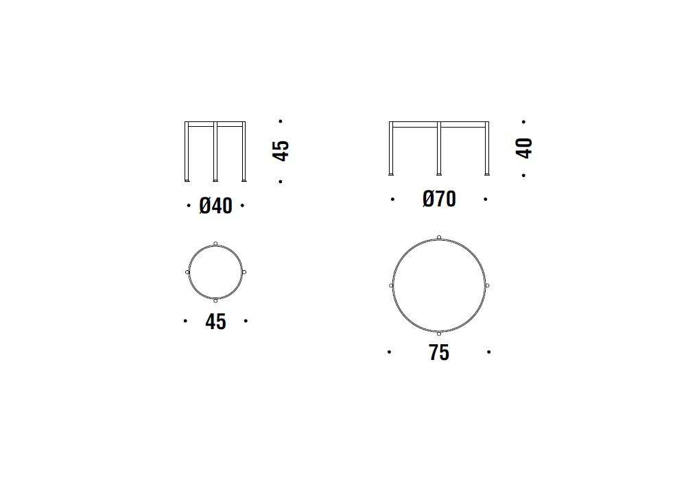 | Dimensiones | • Ø 40 x H 45 cm; • Ø 70 x H 40 cm. |