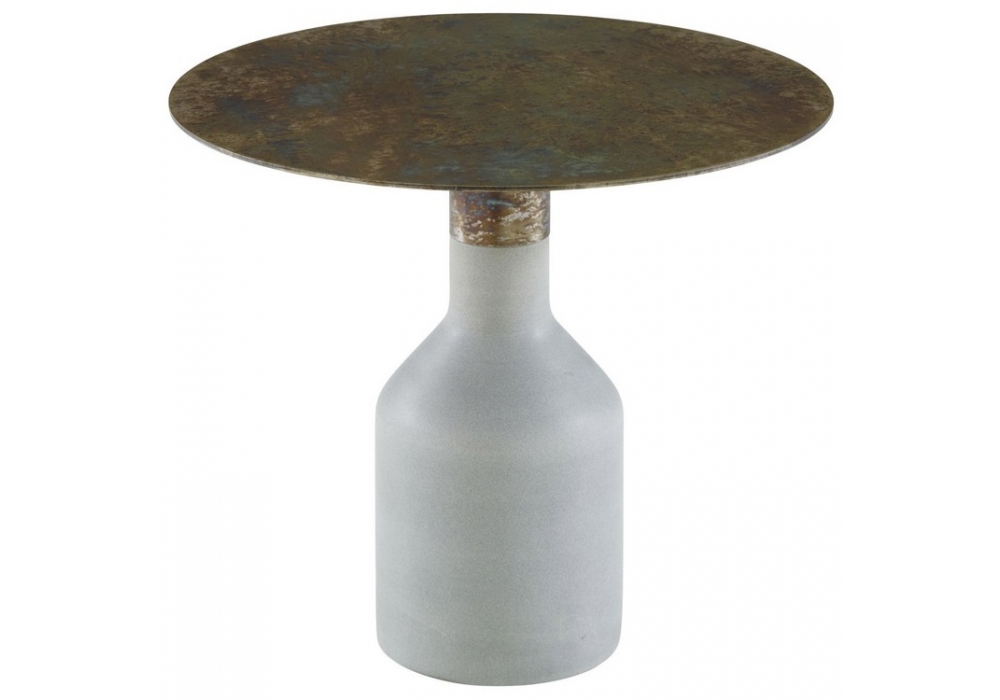 Oxydation diseñada por Kateryna Sokolova para Ligne Roset es una mesa auxiliar con superficie de acero oxidado (tratado al ácido), acabado con barniz transparente. Base en piedra Toscana.