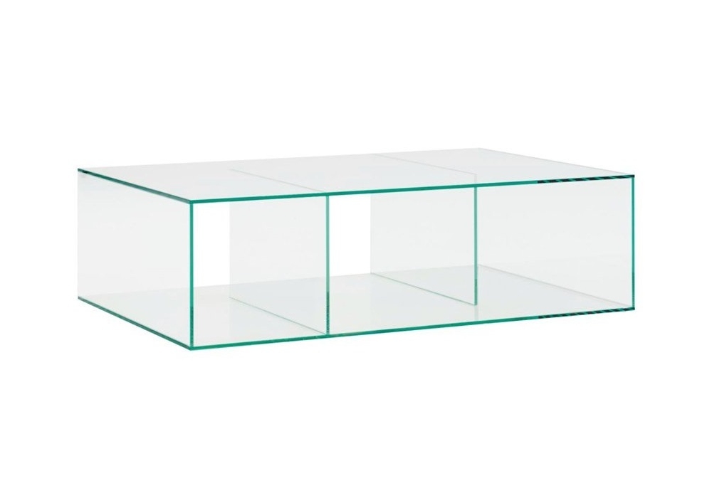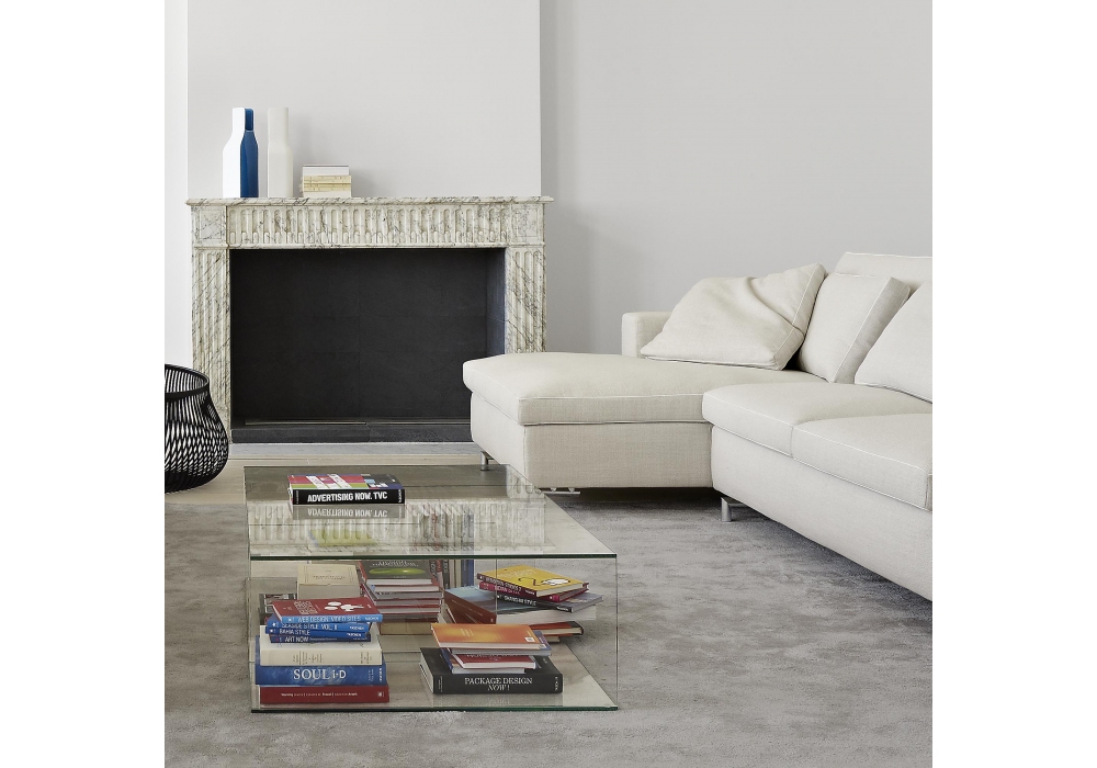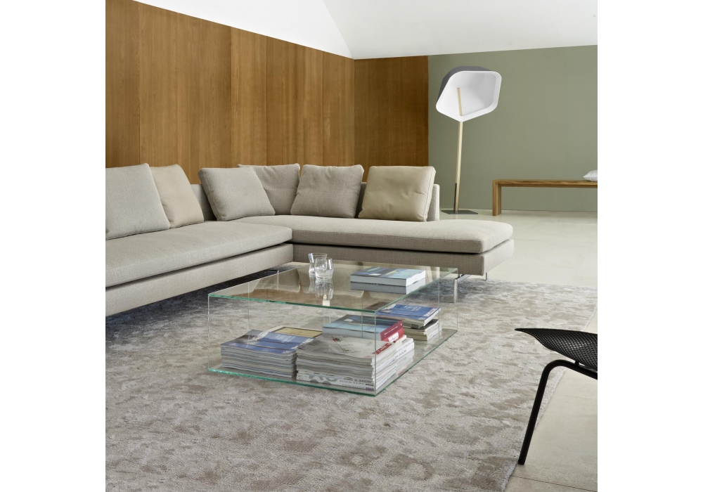 Saldo diseñada por Nick Rennie para Ligne Roset es una mesita rectangular en vidrio 'crystal' de 8 mm de espesor, que se suministra con 4 deslizadores transparentes autoadhesivos.