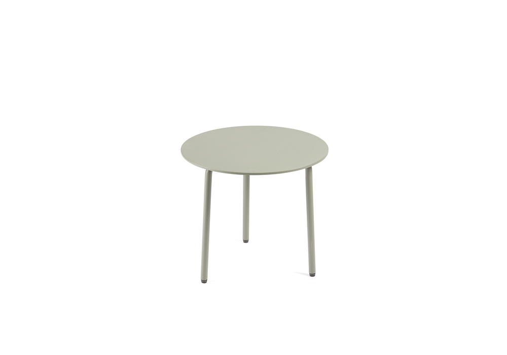 August diseñada por Vincent Van Duysen para Serax es una mesa auxiliar, con estructura portante y tapa circular en aluminio. August está disponible en tres tamaños diferentes y tres acabados; arena, eucalipto verde y negro.