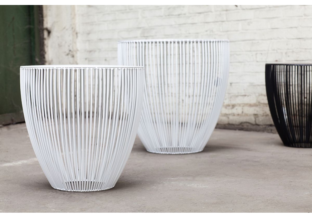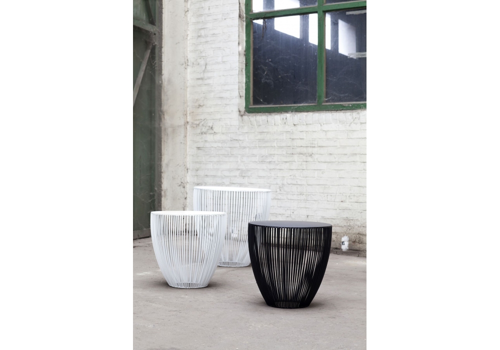 Bingo Antonino diseñada por Antonino Sciortino para Serax es una mesita, con tablero y estructura circular con forma acampanada en metal pintada en blanco o negro. Bingo Antonino está disponible en dos tamaños diferentes; S o L.