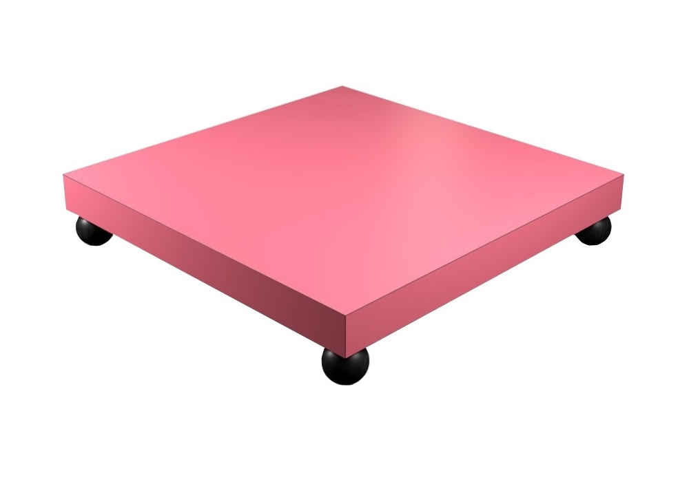 T02 diseñada por Superstudio para Poltronova es una mesita realizada con sobre en contrachapado laminado heritage rosa y patas en haya torneada y pintada de negro.