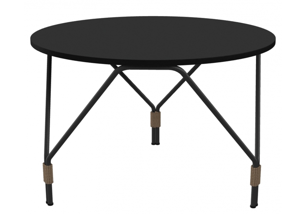 Weld diseñada por Busetti, Garuti y Redaelli para Potocco es una mesita circular con base de tres patas estructurada en metal con detalles en gasa o cuerda náutica en diferentes colores. La tapa es de HPL, madera o gres en diferentes acabados. La soldadura está disponible en diferentes dimensiones.