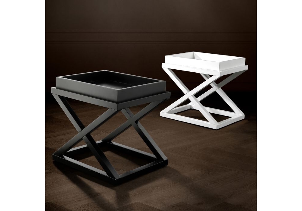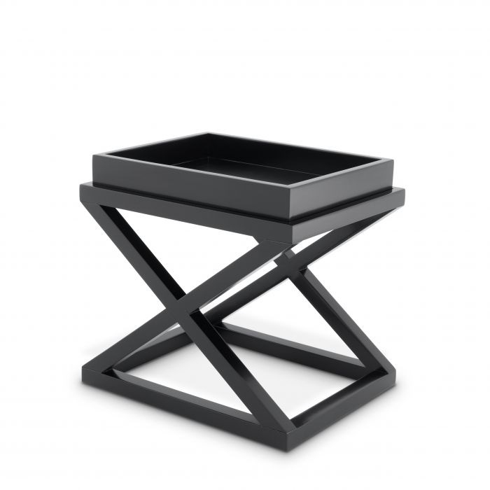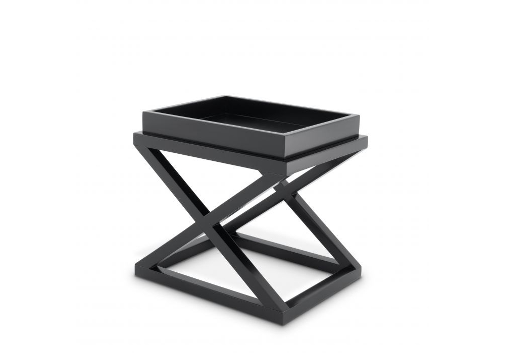 Side Table McArthur diseñada por Eichholtz es una mesa auxiliar en madera de abedu, estructura en cruz sobre una base rectangular y una bandeja extraíble con bordes altos