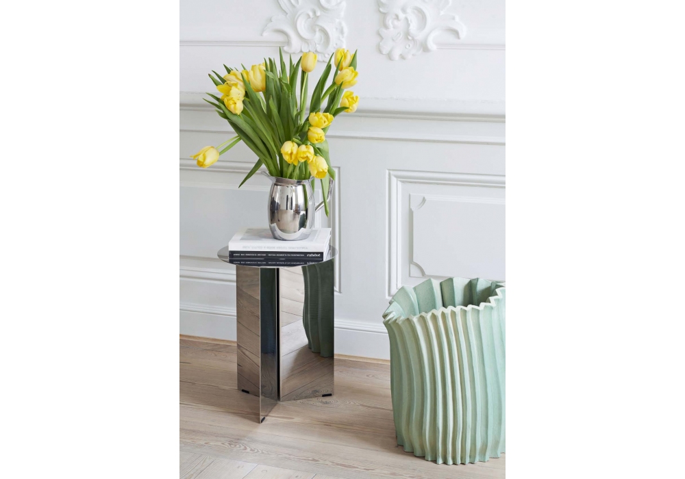 Slit Table High diseñada y producida por Hay es una mesita alta geométrica hecha de acero con recubrimiento de polvo, pulido espejo o color latón pulido. Disponible en diferentes acabados.
