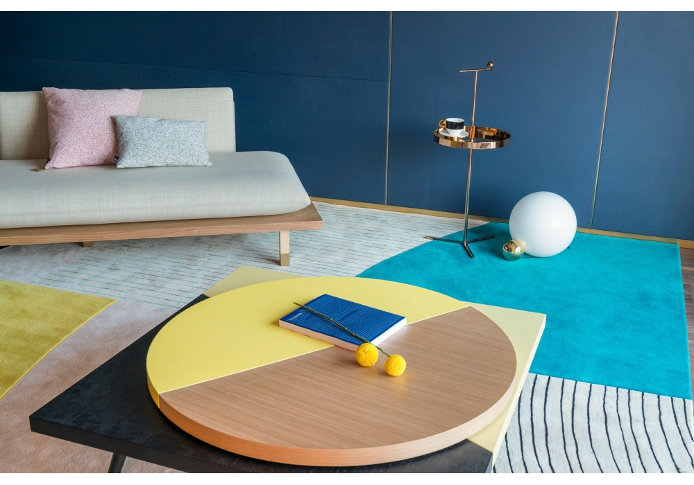 Lazy Susan diseñada por Thomas Dariel para Maison Dada es una mesita con tablero giratorio circular en MDF chapado en roble y estructura cuadrangular también en MDF chapado en roble y barnizado. Pies en chapa de metal con puntas de metal. Lazy Susan está disponible en diferentes acabados.