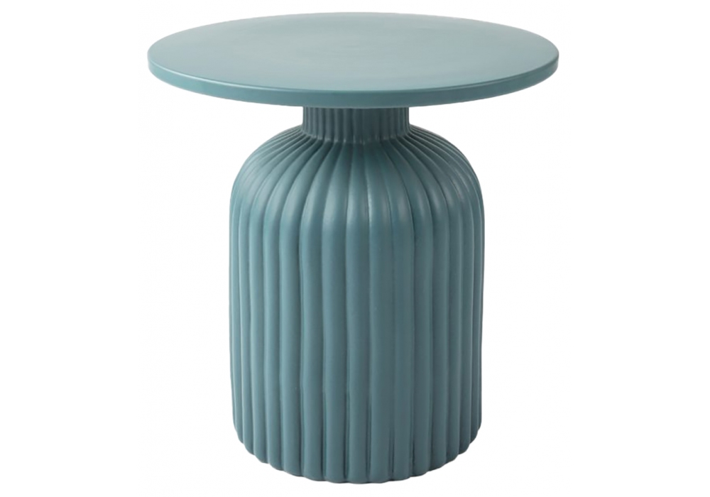 Ousmane N°1 diseñada por Thomas Dariel para Maison Dada es una mesa auxiliar con tapa circular y base cilíndrica rayada, completamente realizada en cerámica pintada.
