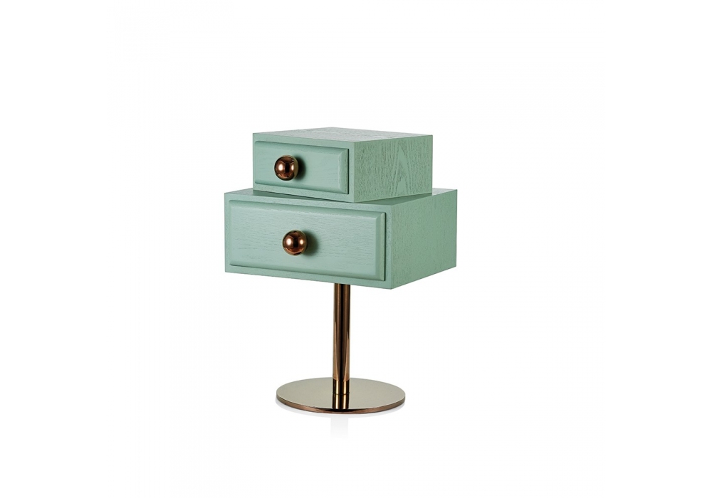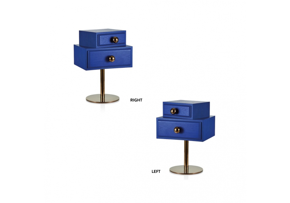 Stand By Me diseñada por Thomas Dariel para Maison Dada es una mesa auxiliar con estructura cuadrangular en MDF chapado en fresno y base en metal chapado en cobre rosa brillante. Stand By Me está disponible en diferentes acabados y en dos modelos: derecho e izquierdo.